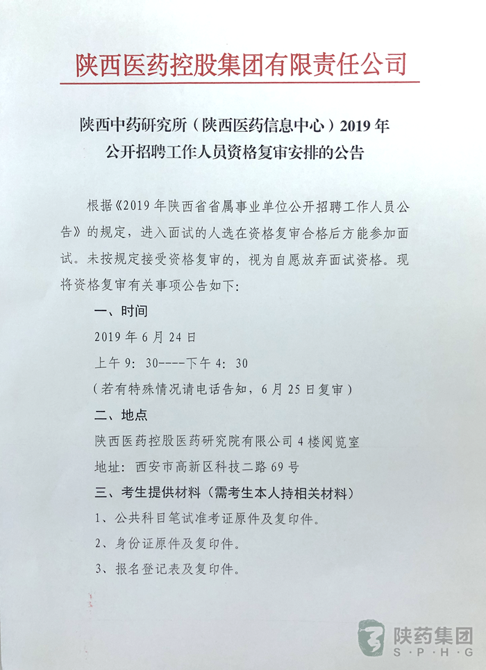 陜西中藥研究所(陜西醫(yī)藥信息中心)2019年公開招聘工作人員資格復(fù)審安排的公告